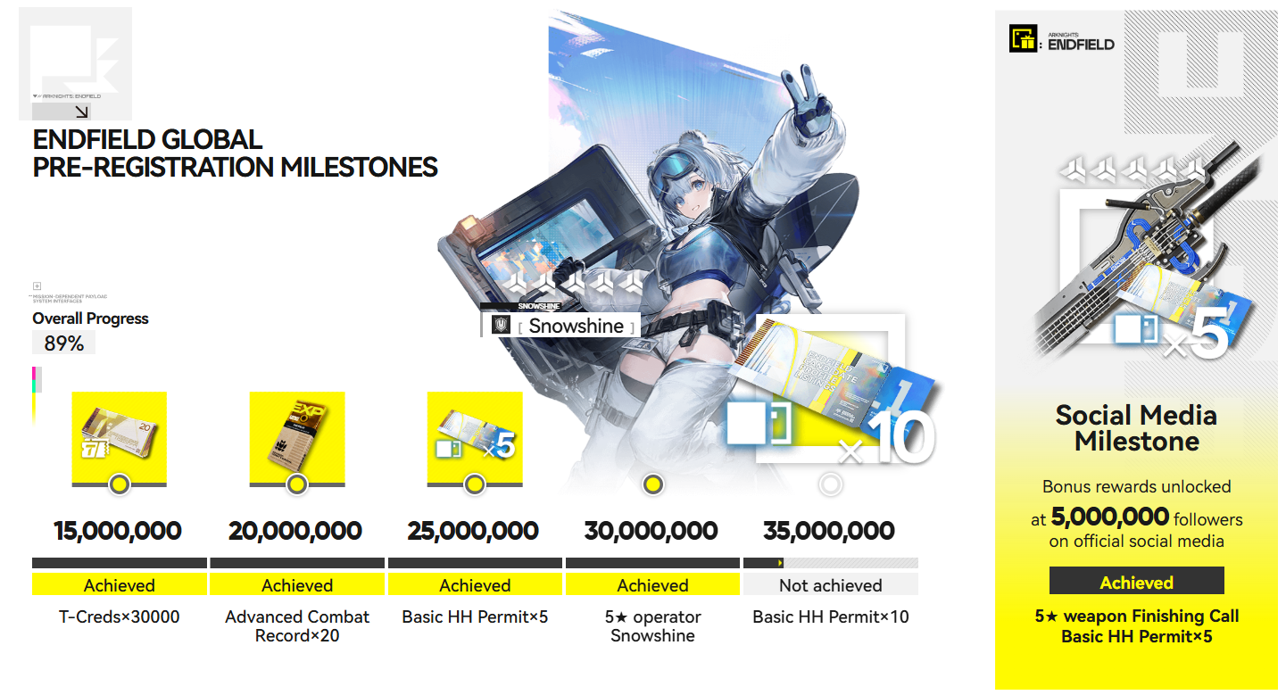 Arknights: Endfield offers global pre-registration rewards that unlock based on the total number of registered players worldwide. All eligible rewards will be distributed to players after the public test and official release.