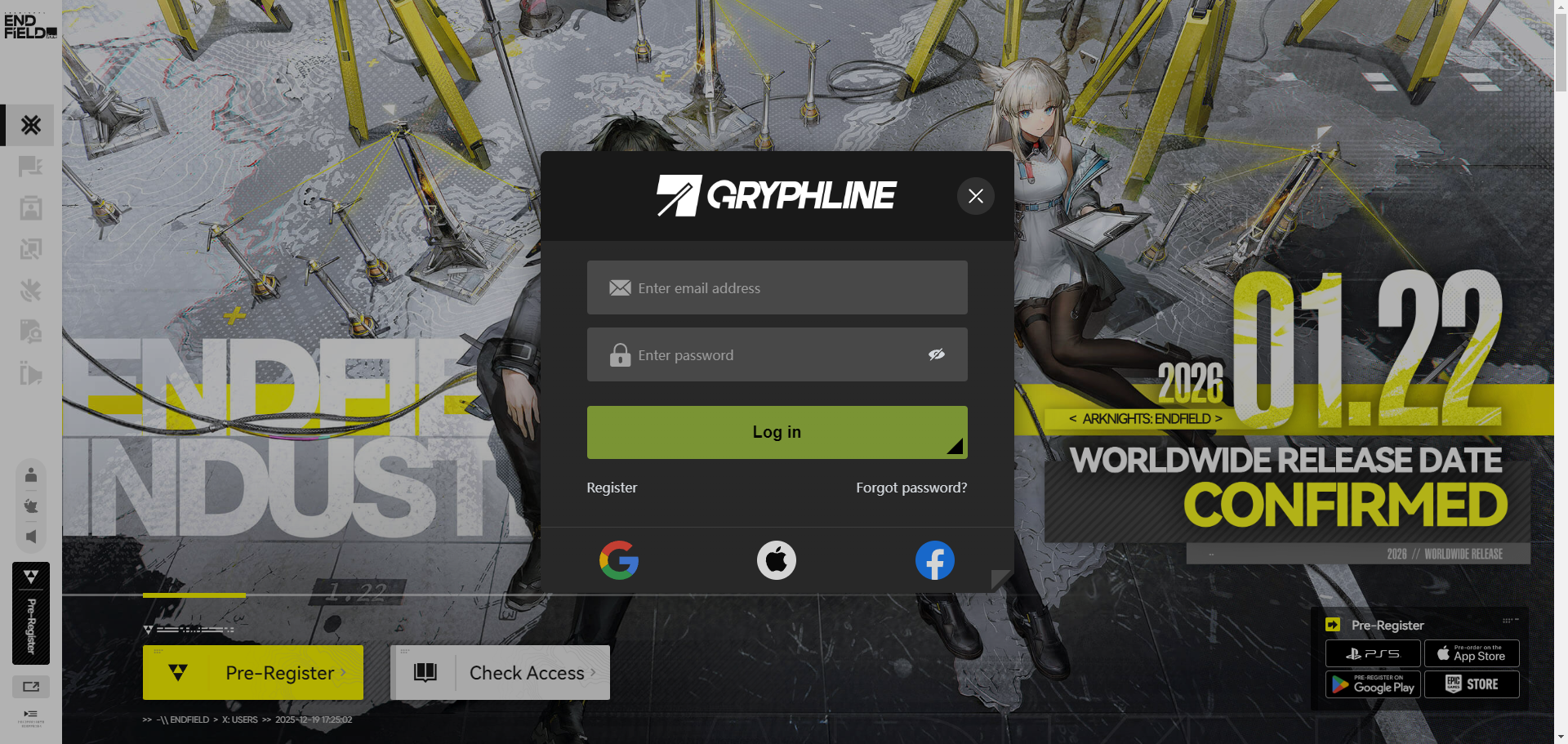 Official pre-registration page: https://endfield.gryphline.com/